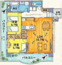 専有面積:71.86㎡(約21.7坪)2LDK(洋 6.7・5.7 LDK 18.7)